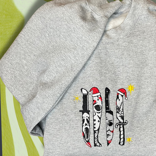 Halloween on Christmas Embroidered Unisex Crewneck Sweatshirt