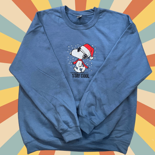 Snoopy Stay Cool Embroidered Holiday Crewneck Sweatshirt