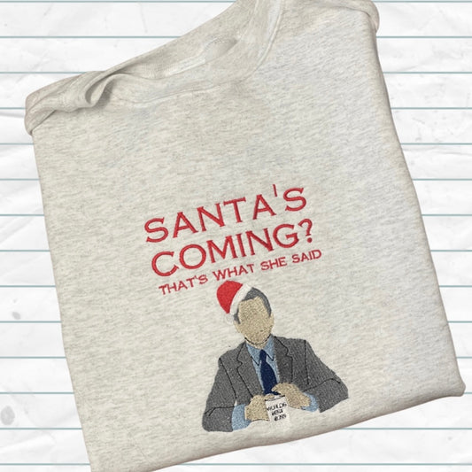 Santa Embroidered Holiday Crewneck Sweatshirt