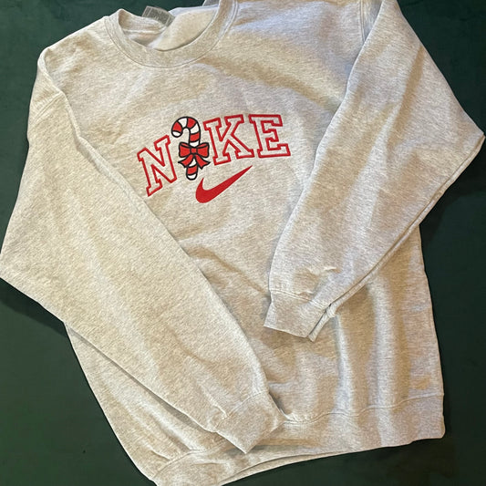 Candy Cane Holiday Embroidered Crewneck Sweatshirt