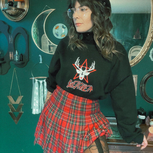 Sleigher Reindeer in Blood Embroidered Holiday Crewneck Sweatshirt