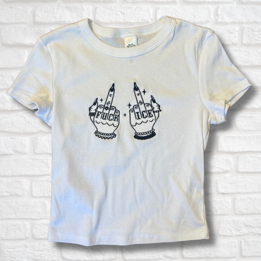 Give ICE The Finger Embroidered Baby Tee or Unisex T-Shirt