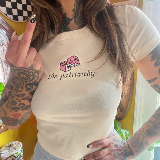Fuck The Patriarchy Embroidered Baby Tee, Unisex T-Shirt or Crewneck Sweatshirt