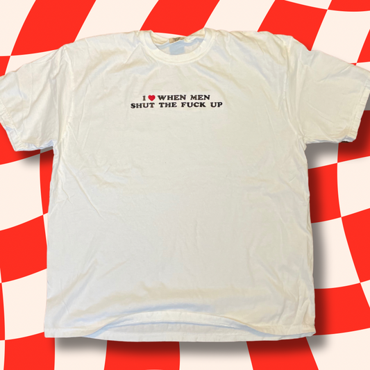 I Love When Men STFU Embroidered Baby Tee, Unisex T-Shirt or Crewneck Sweatshirt