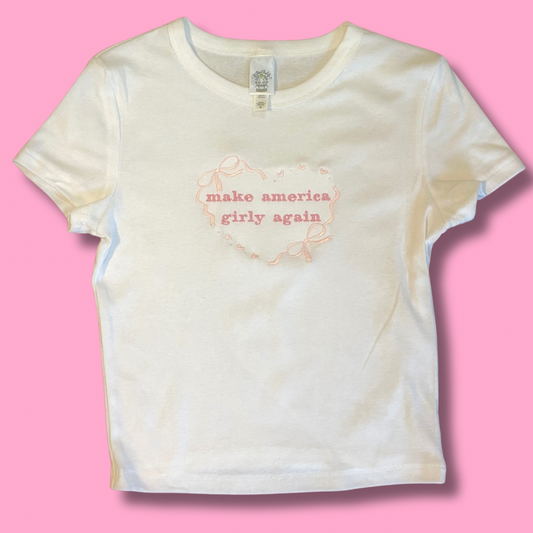Make America Girly Again Embroidered Baby Tee, Unisex T-Shirt or Crewneck Sweatshirt