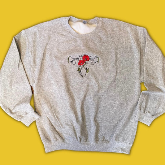 Floral Uterus Ovarian Embroidered Crewneck Sweatshirt