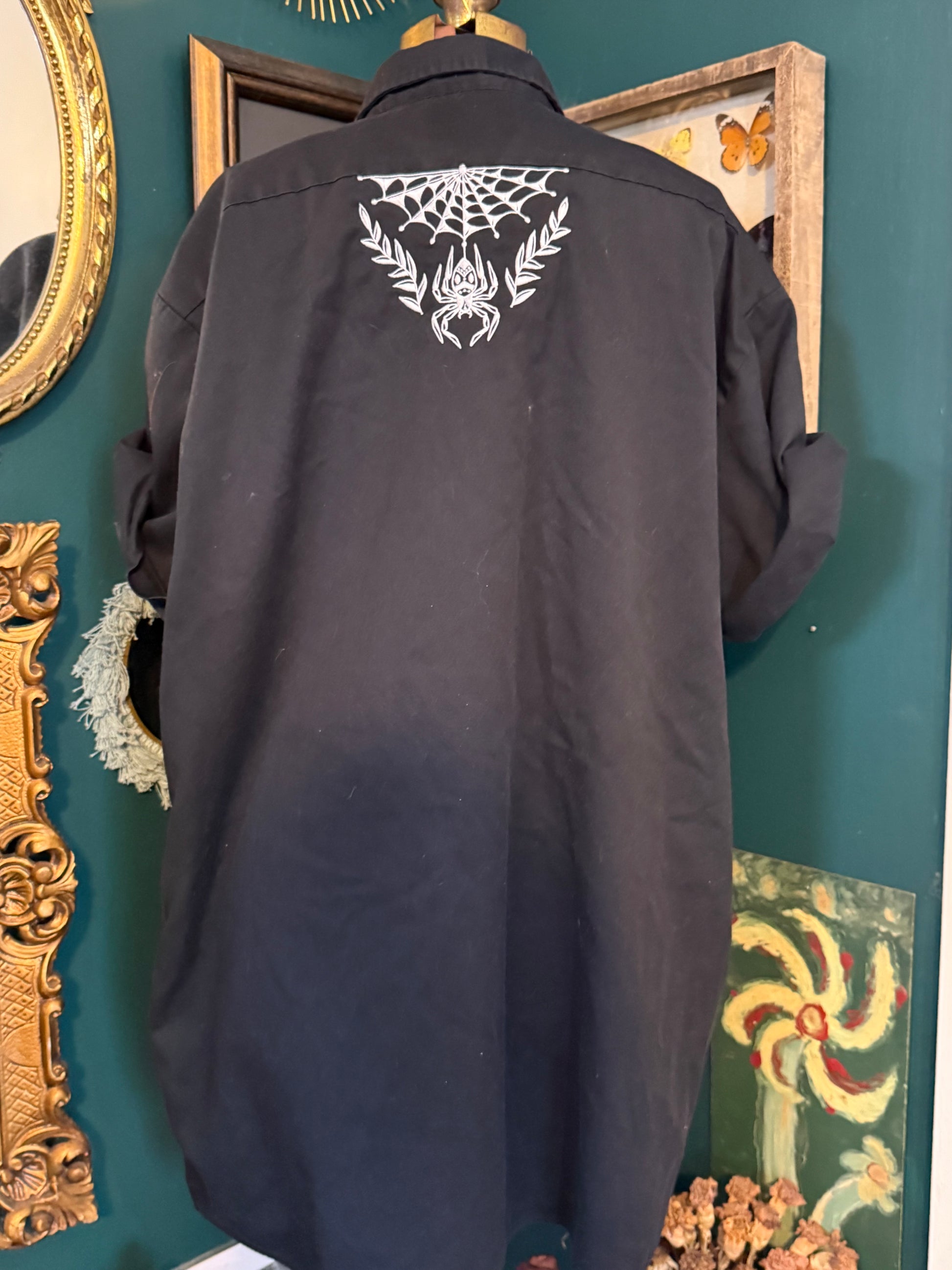 🕷️ Custom Embroidered Dickies Black Work Shirt – Men’s 2XL