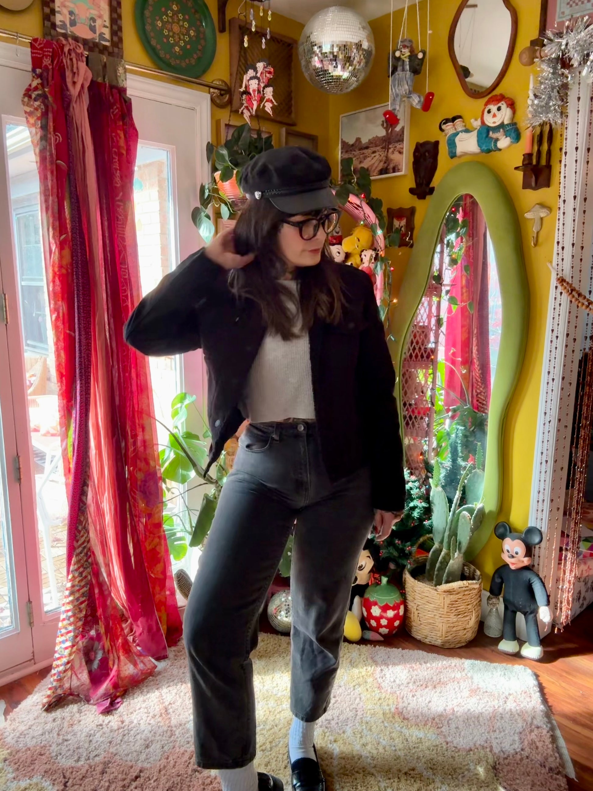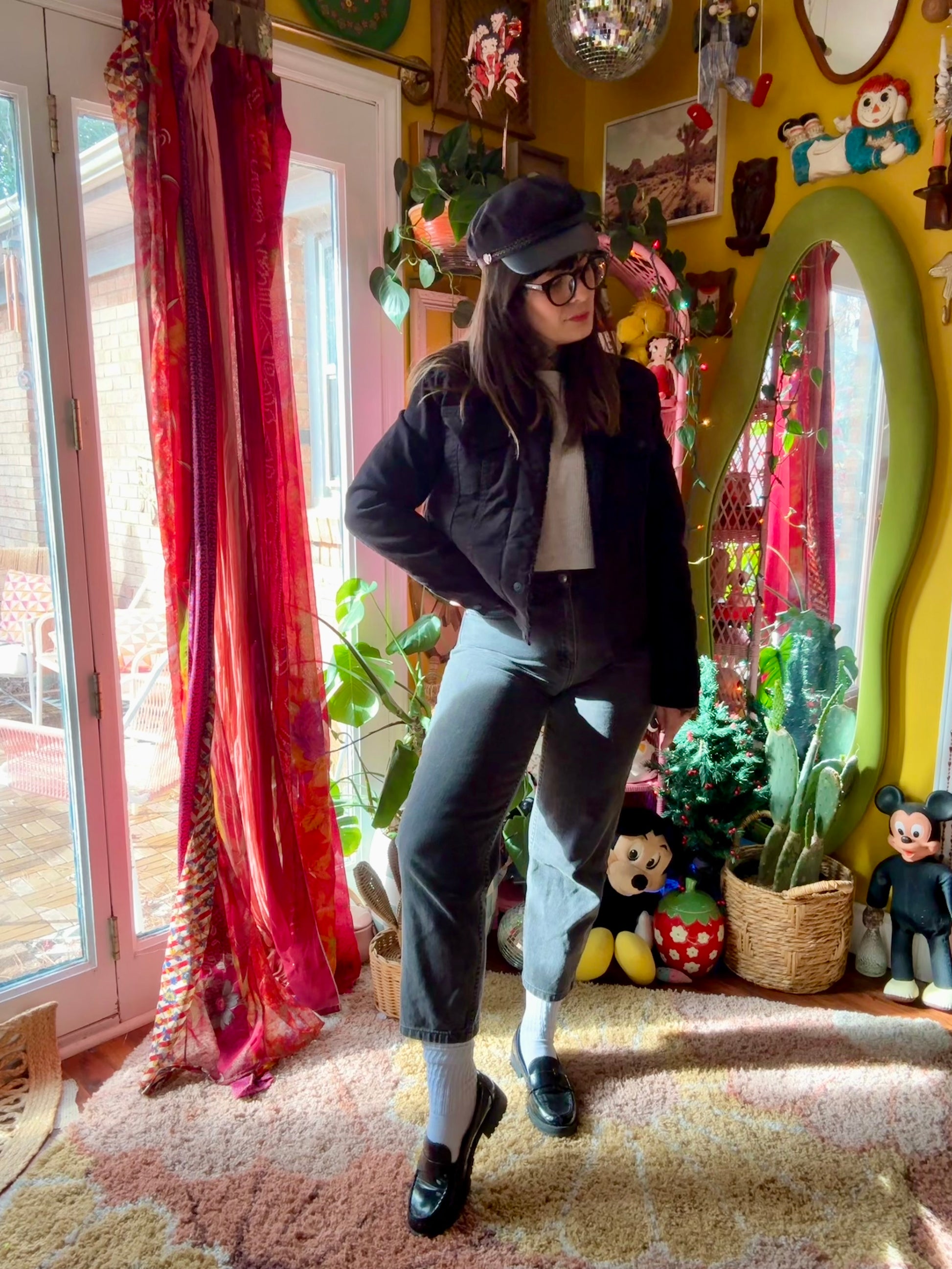 This isn’t just a jacket—it’s wearable art. A classic Levi’s black denim trucker jacket, repurposed and upgraded with bold embroidery, lined with cozy sherpa for warmth and comfort.