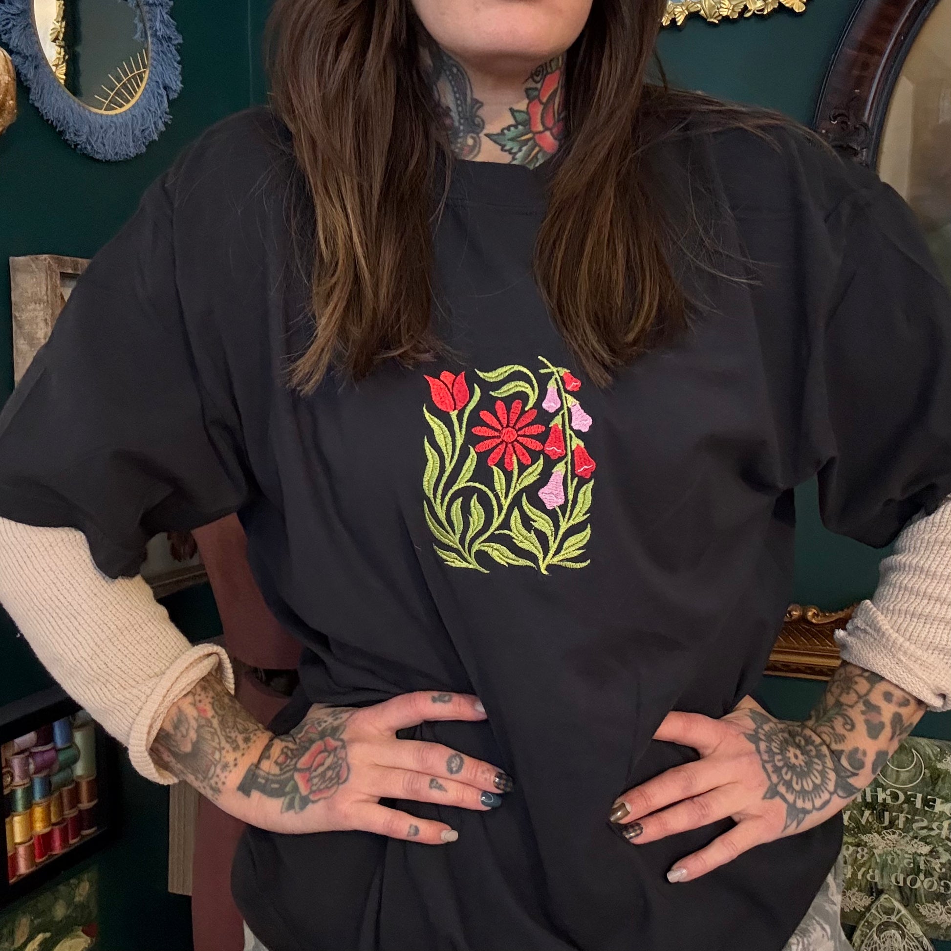 🌸 Foxglove Daisy Tulip Embroidered Unisex T-Shirt, Sweatshirt or Baby Tee 🌸